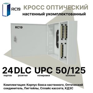 RC19 ШКОН-У-24-DLC/UPC-ОМ3-50/125 Кросс оптический настенный на 24 порта DLC 50/125мкм (ОМ3) предсобранный (пигтейл LC 50/125 (ОМ3)-48шт, розетка DLC-24шт, планки SC/DLC, сплайс кассета-2шт, крышка для сплайс кассеты-1шт, КДЗС-48шт) Оптический настенный