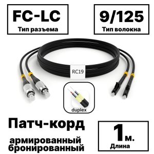 RC19 PC-ARM-2×3,0-2FC/UPC-2LC/UPC-SM-25м-LSZH Патч-корд оптический армированный бронированный duplex FC-LC 9/125 (G.657A1) одномодовый SM (3.0мм) LSZH, 25м армированный шнур оптический duplex O 3,0мм