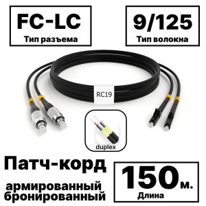 RC19 PC-ARM-2×3,0-2FC/UPC-2LC/UPC-SM-150м-LSZH Патч-корд оптический армированный бронированный duplex FC-LC 9/125 (G.657A1) одномодовый SM (3.0мм) LSZH, 150м армированный шнур оптический duplex O 3,0мм