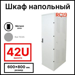 Шкаф серверный телекоммуникационный напольный 19amp;quot; 42U 600x800x2055мм (ШхГхВ), передняя дверь металлическая, цвет серый Ral 7035 RL4268M RC19