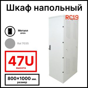Шкаф серверный телекоммуникационный напольный 19amp;quot; 47U 800x1000x2209мм (ШхГхВ) передняя дверь металлическая, цвет серый Ral 7035 RL47810M RC19